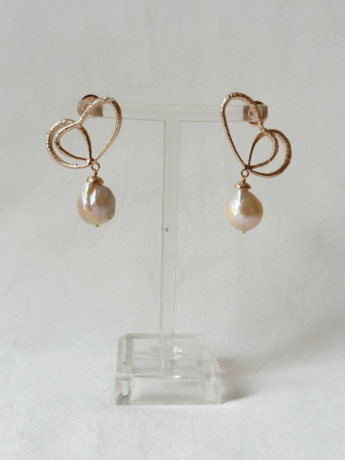 Delicately textured butterflies whisper whimsical stories from an enchanted garden as they perch on your earlobes clutching warm hued baroque pearl drops that capture the glow of the first sunshine!